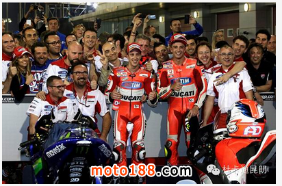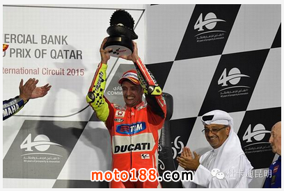 在剛剛過去的 Moto GP 卡塔爾站中,杜卡迪廠隊的兩名選手 Andrea Dovizioso 和 Andrea Iannone 表現出色,連奪第二第三寶座!作為 2015 MotoGP 世界冠軍賽的首站,卡塔爾站的優異表現振奮了杜卡迪廠隊的精神,讓所有人興奮不已。本賽季 MotoGP 卡塔爾站是全新杜卡迪戰車 Desmosedici GP15 在正式比賽中首次亮相。