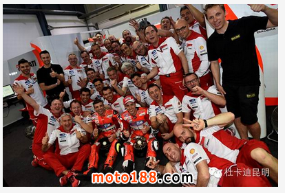 在之前的排位賽中,杜卡迪車隊的優異表現似乎已經預示著他們會在正式賽中令人眼前一亮。騎著最新的戰車—— Desmosedici GP15,兩位車手分別奪第一和第四的位置,這也為之后的正式比賽中奠定了良好的基礎。