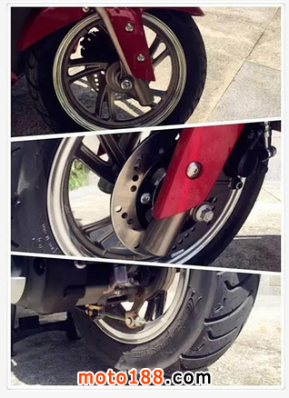 騎行過體驗重點要說一下輪轂,在踏板市場中以10寸居多的背景下,前輪12寸的大輪無疑被襯托出更穩健更好的通過性。