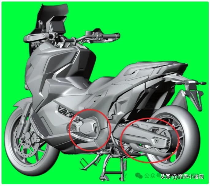 除了這兩個主要的優勢設計之外,這輛車的其他配置也一應俱全,預計會有ABS、TCS的加入,智能配置方面結合手把上的多功能按鍵應該是一塊多功能TFT儀表支持投屏等功能,而且還可以看到有前后攝像頭,同時采用無鑰匙啟動。