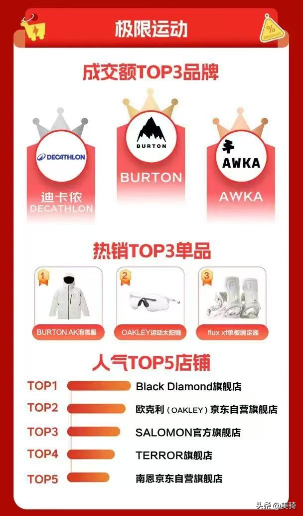 極限運(yùn)動(dòng)榜單中,在騎行眼鏡品類中占據(jù)主要地位的OAKLEY位居熱門店鋪第二名,尤其是熱銷產(chǎn)品第二的OAKLEY運(yùn)動(dòng)太陽(yáng)鏡,購(gòu)買的用戶騎行群體占比極大。