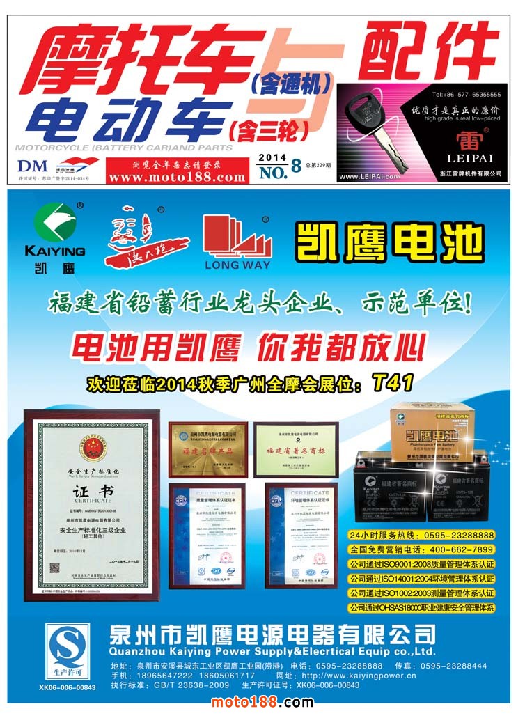 炎熱的夏季終將過去,收獲的秋天在等待我們,從下一期雜志開始,我們就要為廣州全摩會做準備工作了,在這個會上,我們會向全體參會人員奉獻兩本數據庫類書籍,一本是生產廠家的《摩托車配件生產企業大全》,在這一個升級版中,我們新增加十幾個大的摩托車整車生產廠家資料,同時增加二十家電動車生產廠家及十幾家三輪摩托車和三輪電動車廠家,努力根據市場需要豐富書的內容。還有一本就是第二次升級的《華南市場指南》收集廣東和海南兩省的經銷商資料匯總,其中,廣東省的廣州市的市場用中英文出版,目前各項工作正緊張有序的進行,歡迎大家在全摩會期間來廣州保利展館分享我們的勞動果實。春種一粒粟,秋收萬顆籽。