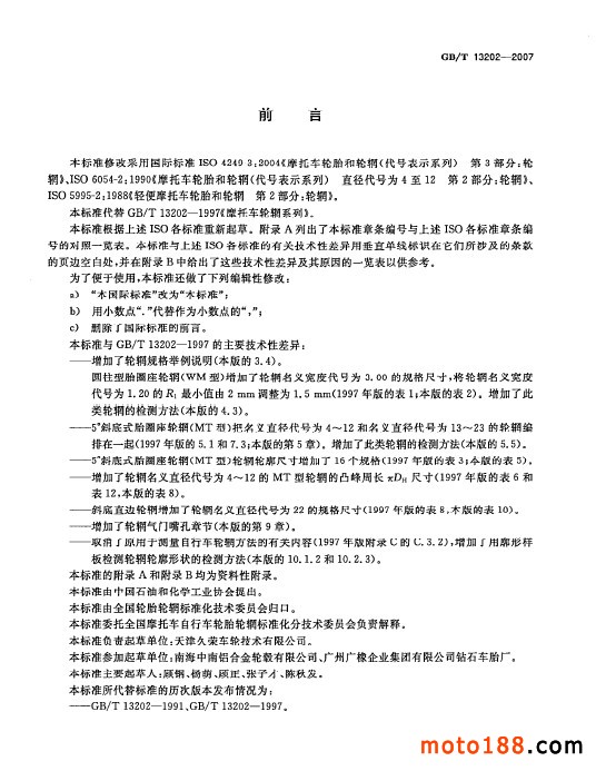 GB/T 13202-2007 摩托車輪輞系列