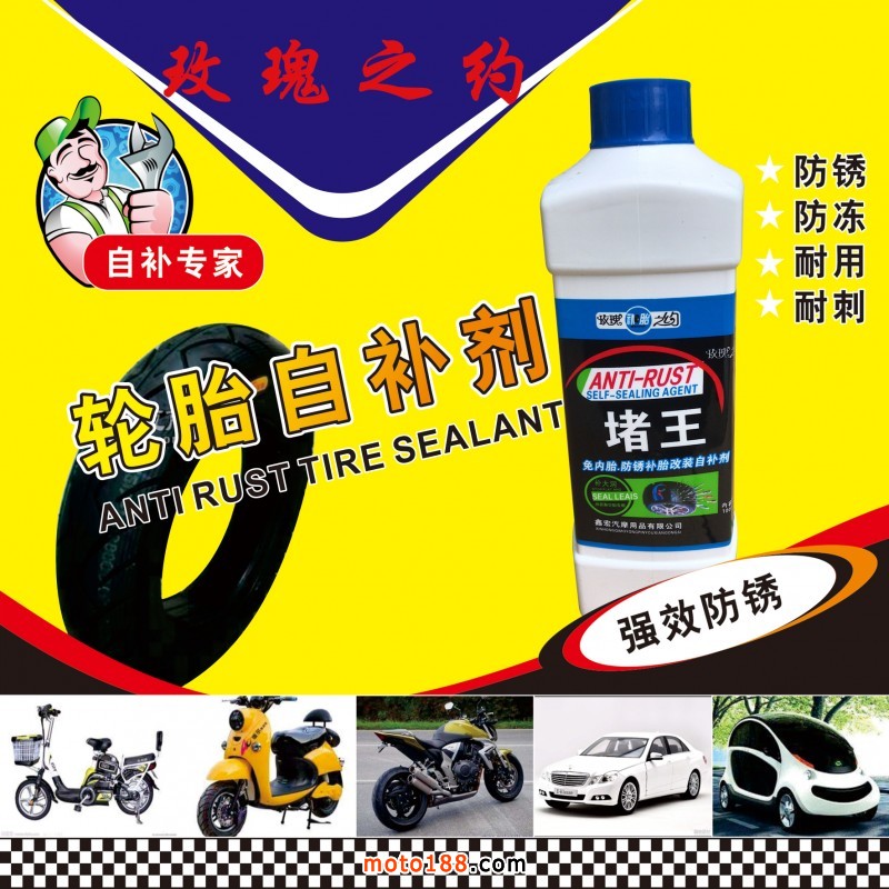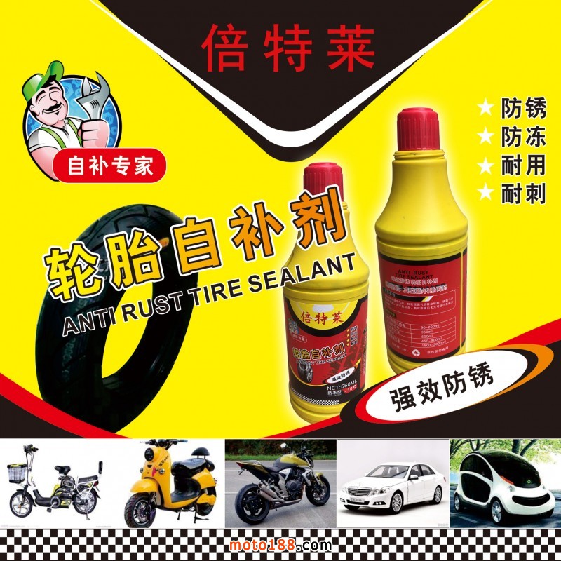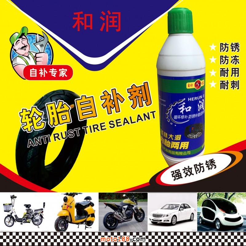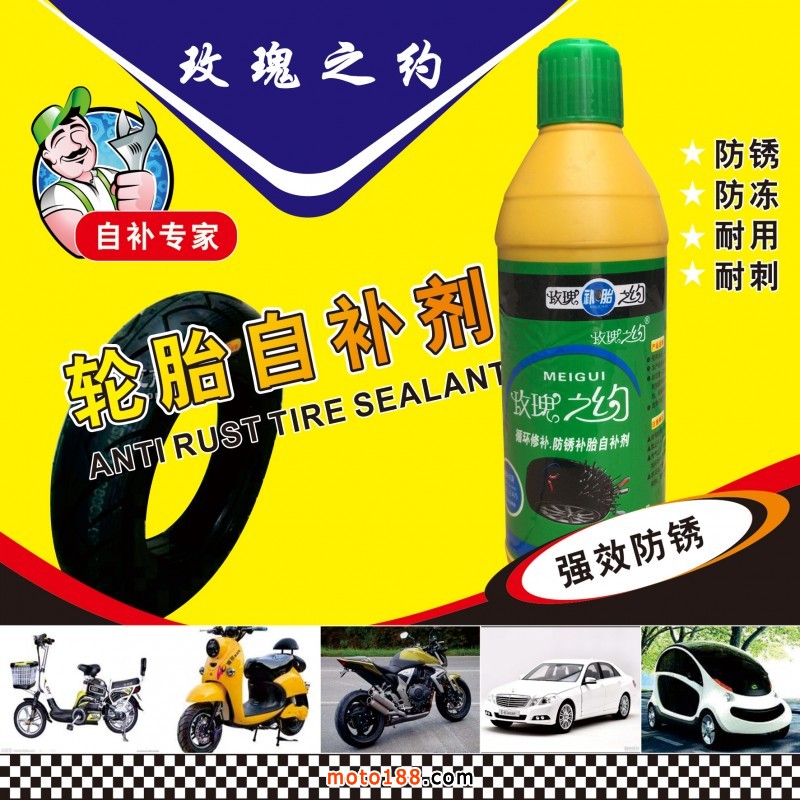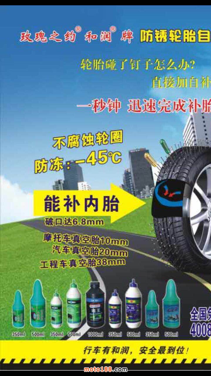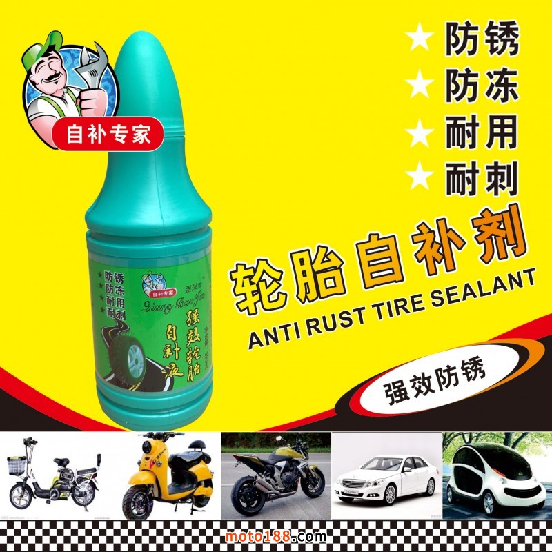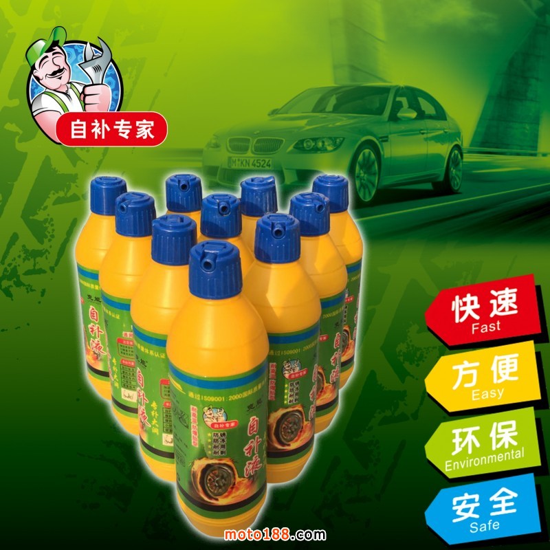 生產的系列品牌輪胎自補液補胎直徑達8毫米,補好以后加氣不裂口,循環補胎,產品PH值為7,屬中性產品,不含酸堿對鋼圈不起腐蝕作用,不易生銹,防凍效果好非常適合北方客戶使用。瓶子柔軟,全新款式蓋子,更容易加裝。一千毫升特別適合出口產品需要的客戶,可根據客戶要求調配和貼牌生產。公司具有正規生產營業執照,可開發票。