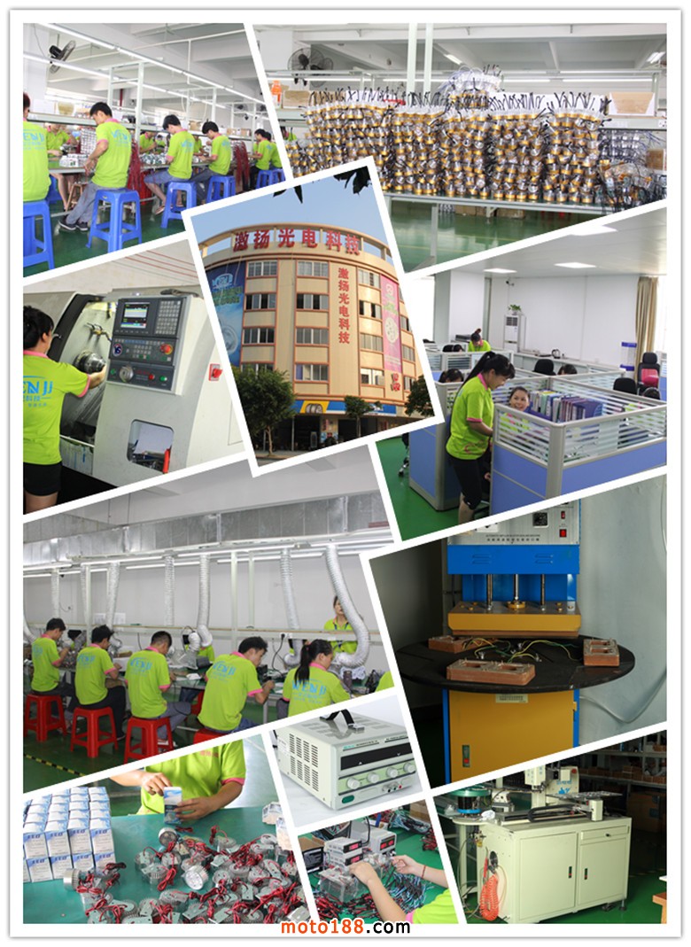 中山市激揚光電科技有限公司,專業生產各種摩托車LED,電動車LED和汽車LED,專注照明系統8年。公司取得CQC認證,EMC認證等各項認證,取得外觀專利,實用專利,發明專利等諸多專利項目!公司產品種類豐富,質量穩定,價格合理!針對外貿市場可接受OEM、ODM,