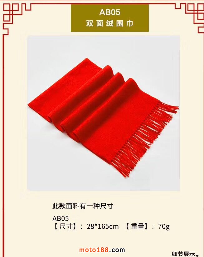 紅色一直有著喜慶、活力的寓意,且看上去非常搶眼,起著烘托的作用,這也是為什么一些會(huì)議、開(kāi)幕、慶典等統(tǒng)統(tǒng)會(huì)披著紅圍巾或作為禮品。可印字刺繡,