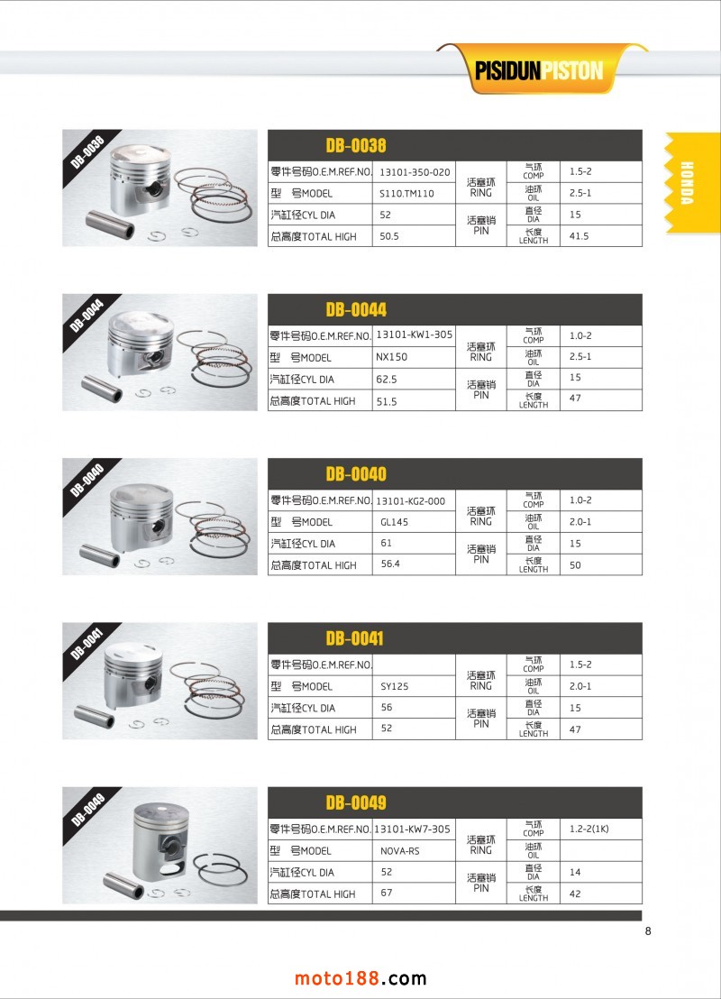 江蘇匹斯頓機車科技有限公司專業生產摩托車活塞,產品遠銷歐美、南美、中東、東南亞等國家,承接來樣定制貼牌加工。手機:19851512555,微信:PSD19851512555,聯系人:吳先生。