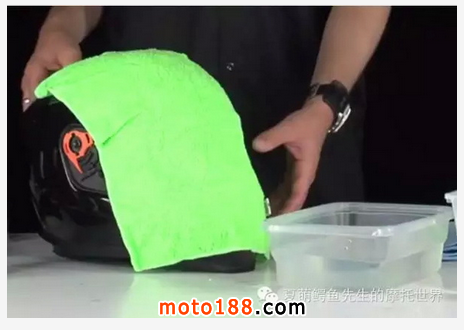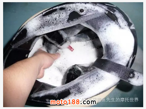 將頭盔整個(gè)浸入裝滿溫度適宜,加了中性洗衣液的水盆中,然后用軟毛的小刷子對(duì)頭盔內(nèi)部和不能拆下的內(nèi)襯進(jìn)行刷洗。