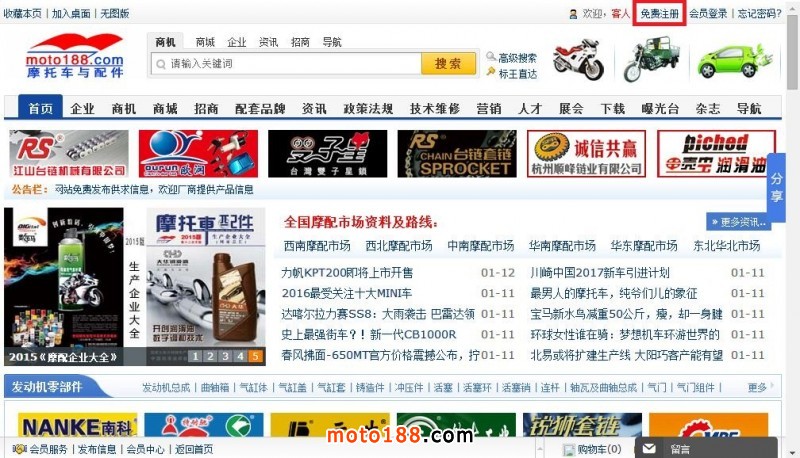 1.點(diǎn)擊打開moto188 http://m.b0k3p.cn/ 點(diǎn)擊右上角免費(fèi)注冊(cè),或者下拉至黃色彩塊部分進(jìn)行注冊(cè)