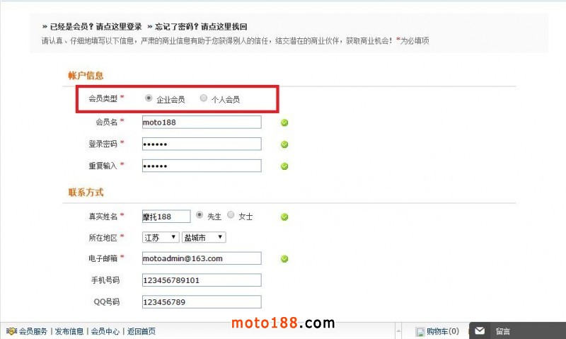 2.選擇企業(yè)會(huì)員或是個(gè)人會(huì)員,填寫您的注冊(cè)信息