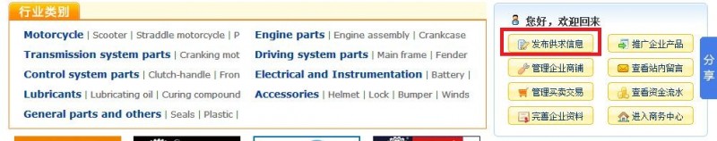 9.登陸成功后,您可通過下拉至黃色彩塊部分,點(diǎn)擊發(fā)布供求信息,進(jìn)行供求信息發(fā)布