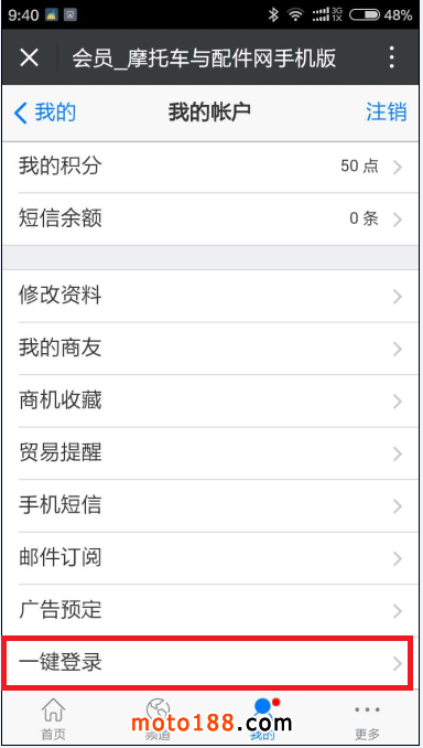 1.點擊賬號處,進入我的賬戶界面,點擊最下方“一鍵登錄”