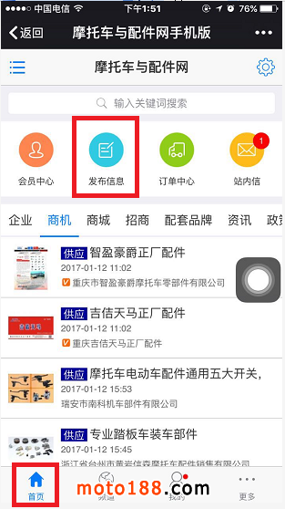 1.登錄成功后,在首頁上方點擊“發(fā)布信息”