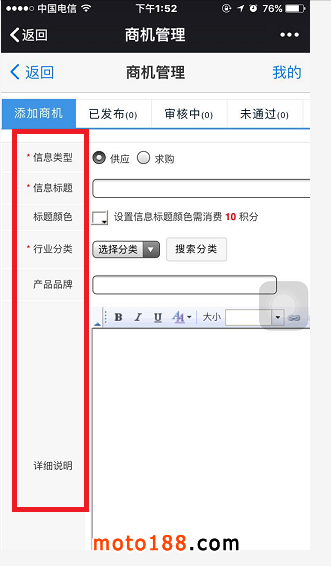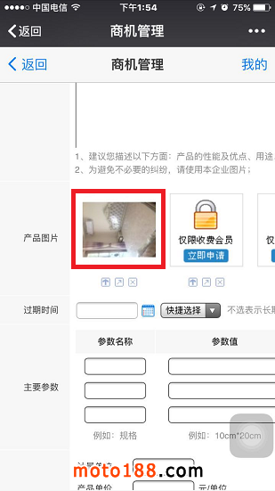 5.帶紅色星號為必填內容,產品圖片處點擊可上傳圖片,目前普通會員只可上傳一張圖片