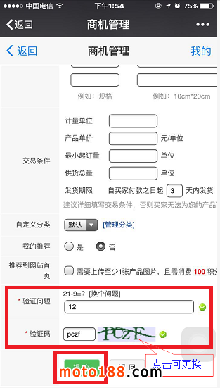 8.內容填寫完以后,點擊“驗證問題”及“驗證碼”,點擊后顯示