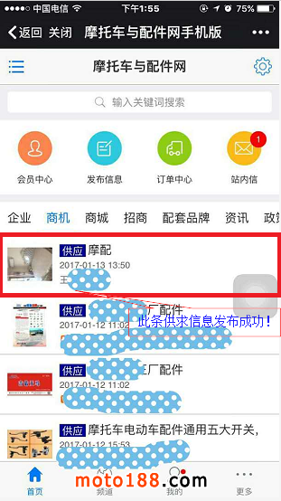 11.成功發(fā)布的信息在首頁-商機頻道可以看到