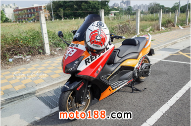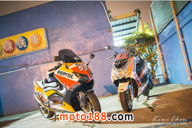 一開始本來想說用成我最愛的Ferrari好了,不過實在沒想到有什么主題適合所以只好放棄,后來那陣子都在看MM93連勝,就想說不然改成我最支持的車手Marc Marquez好了,所以REPSOL,豹豹TMAX就出現了。